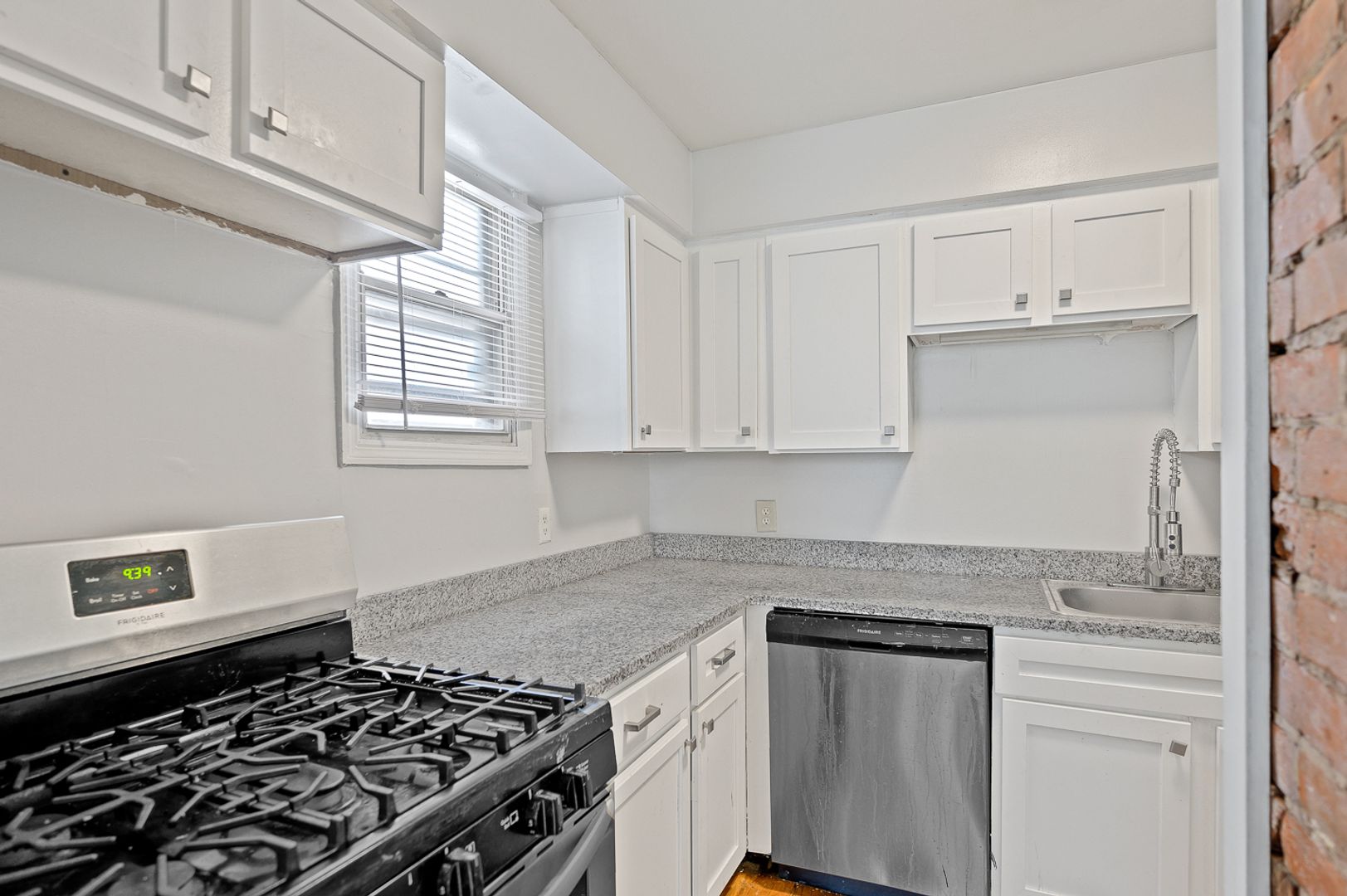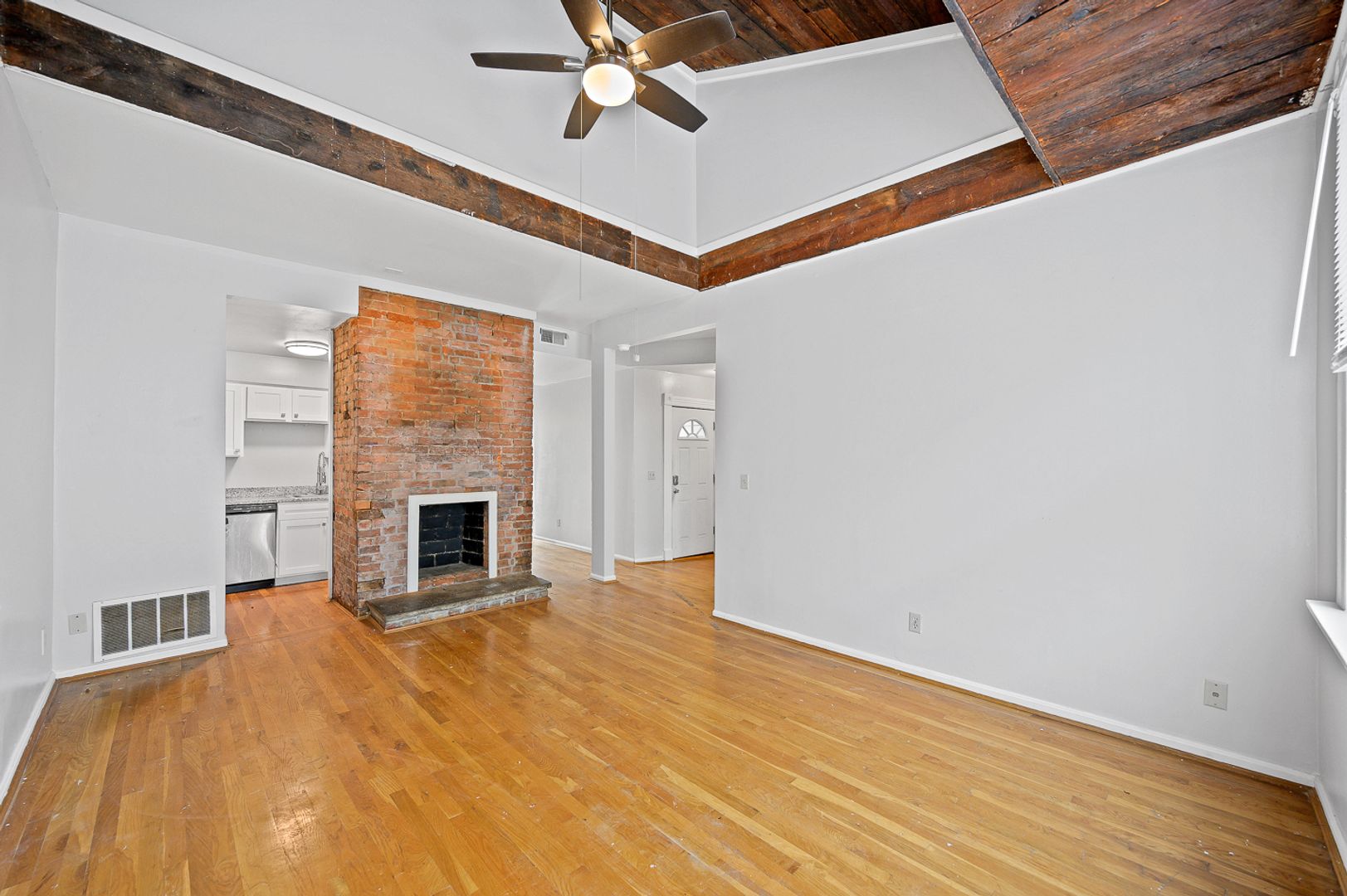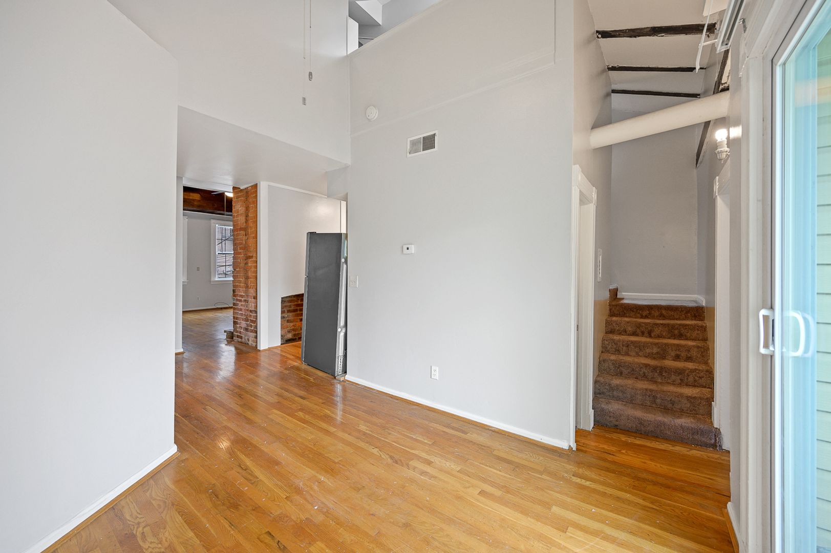 -Unique living room with exposed brick