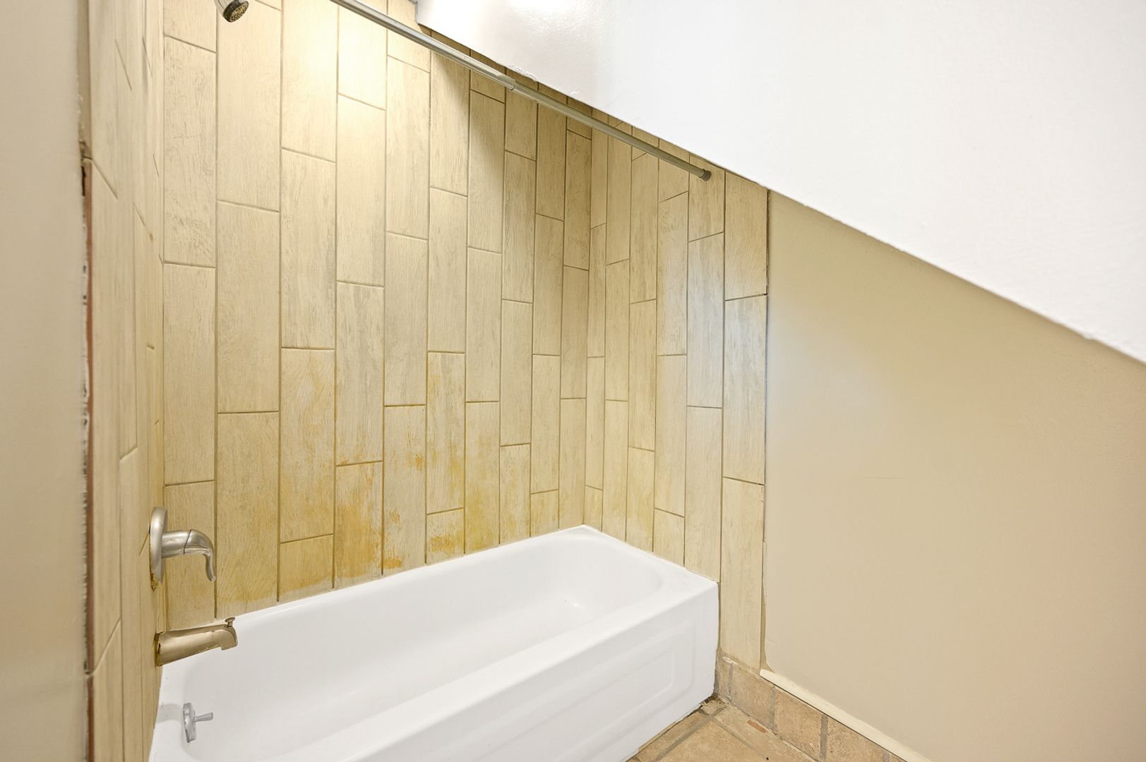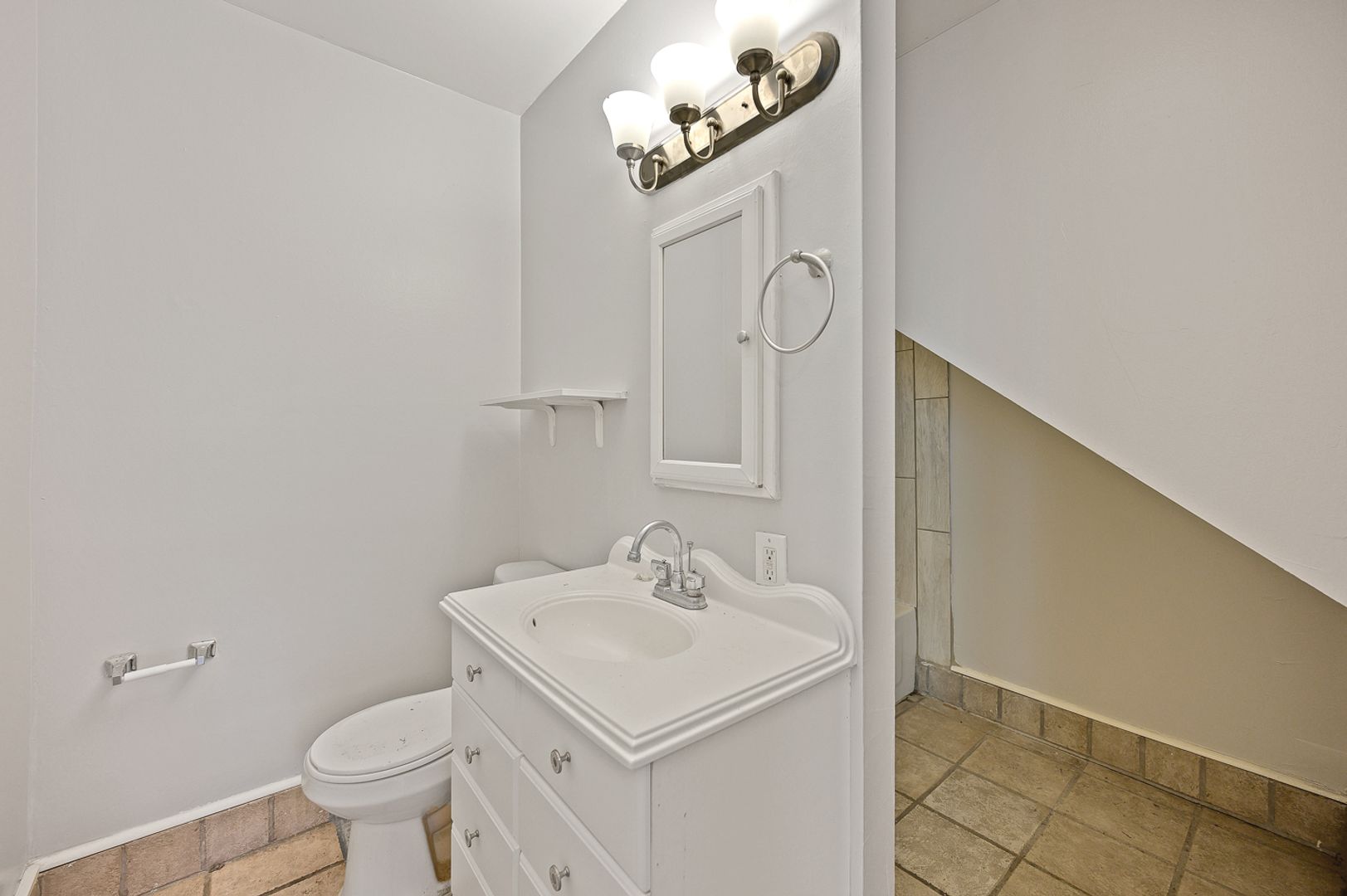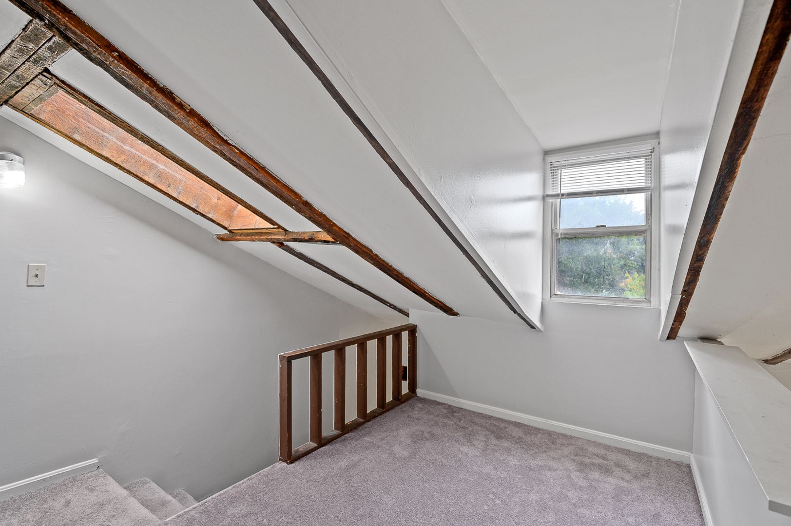 -Unique living room with exposed brick